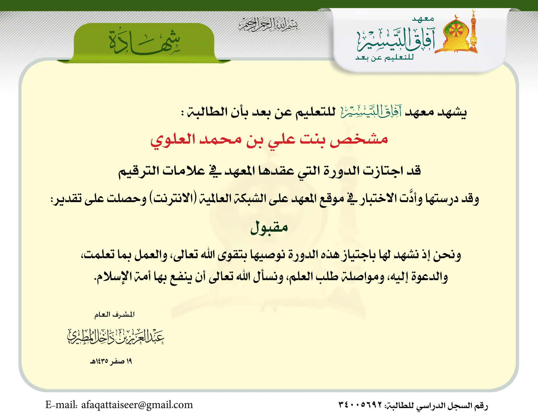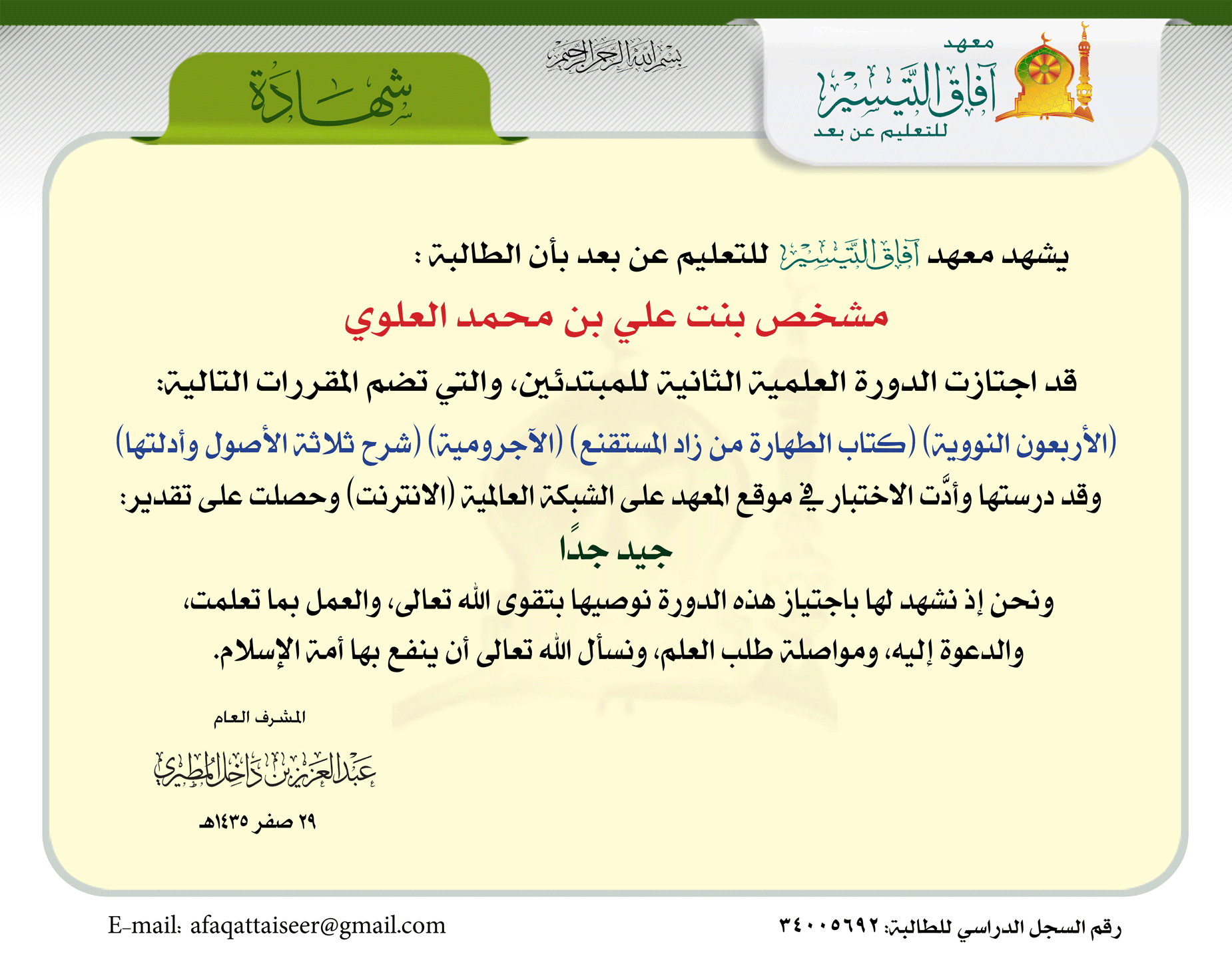 تــاريـخ الـتـخـرج: 15 جمادى الثانية 1434