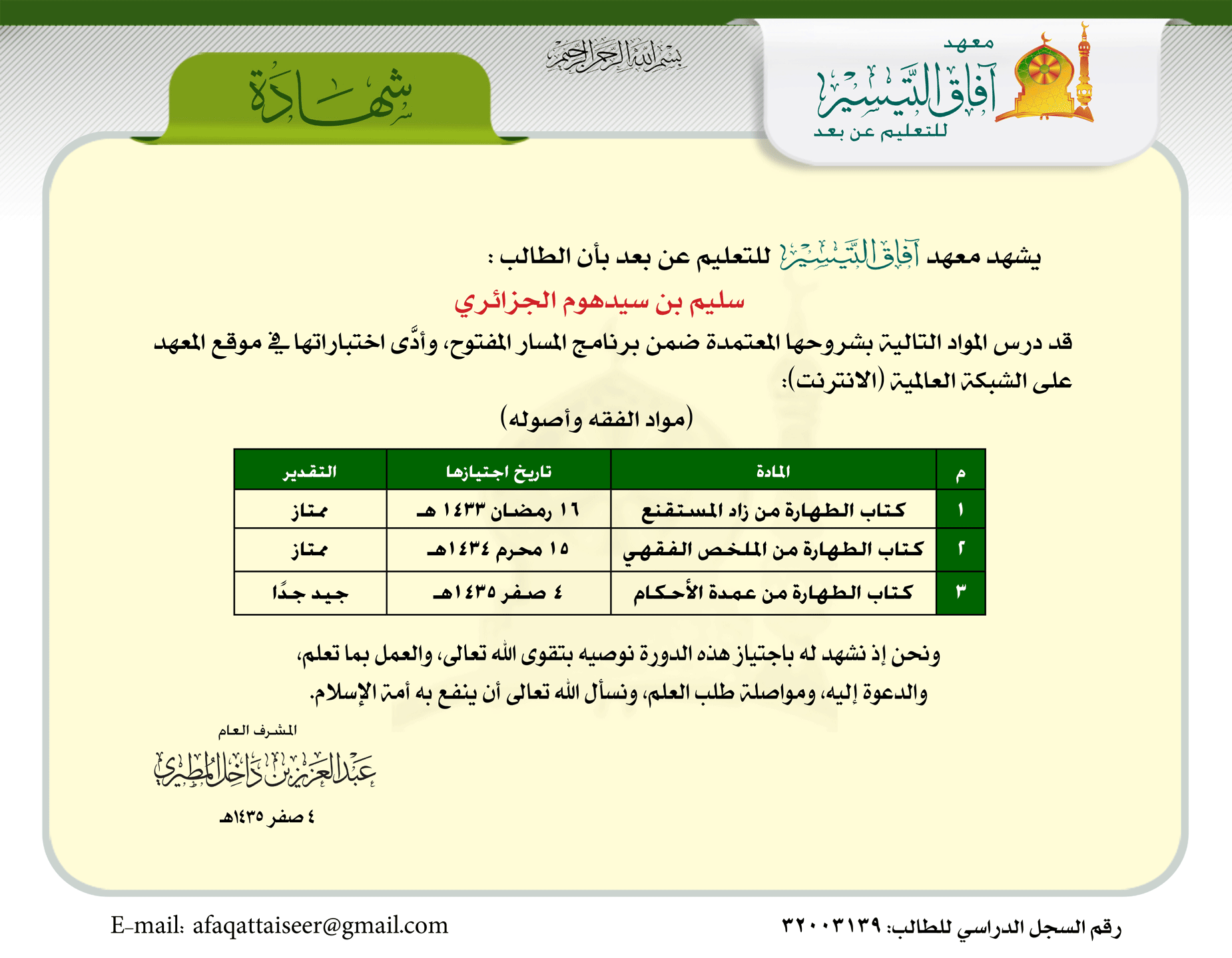1- شهادة مواد علوم القرآن الكريم (هنا)