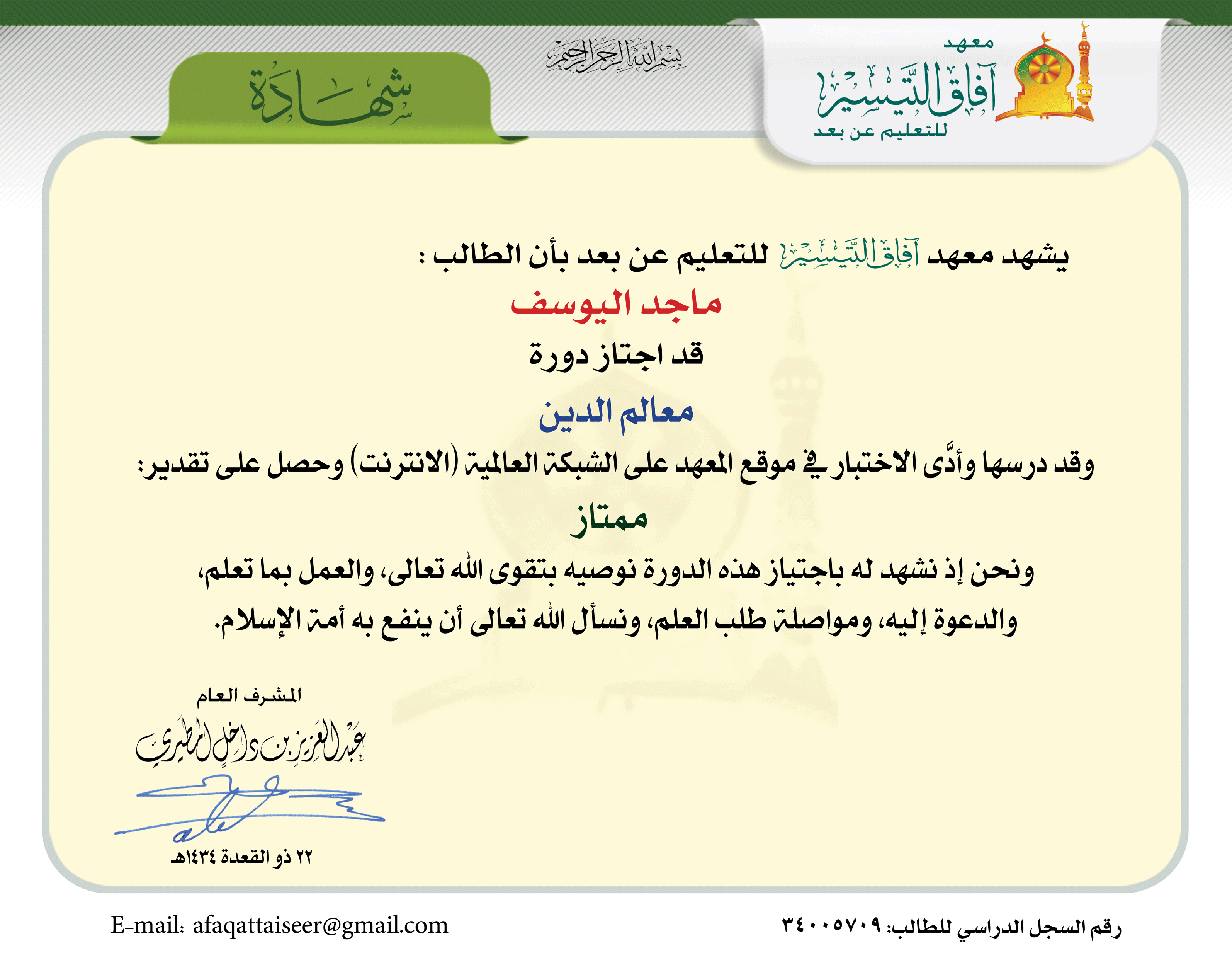 تاريخ التخرج: 21 ربيع الثاني 1437 ه