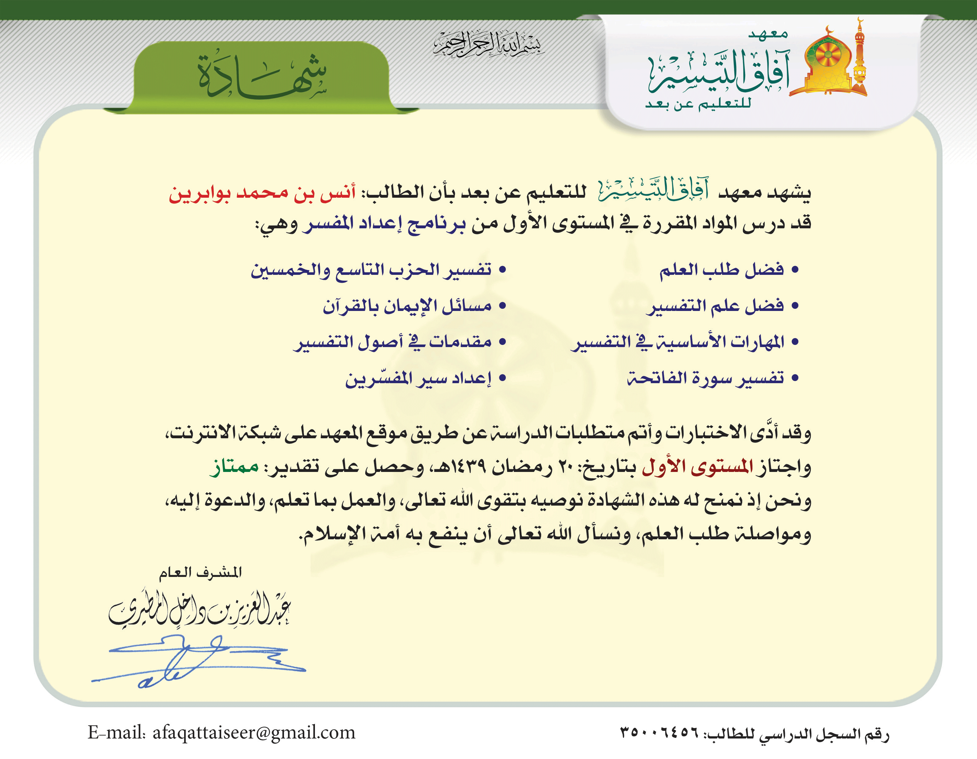 2: أنس بن محمد بوابرين، التقدير: ممتاز، الشهادة: هنا