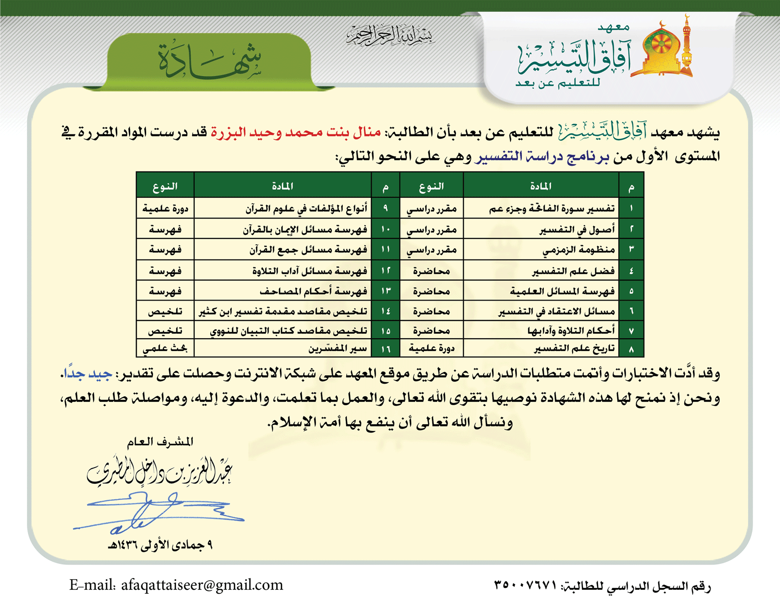 رقم السجل الدراسي: 35007671
