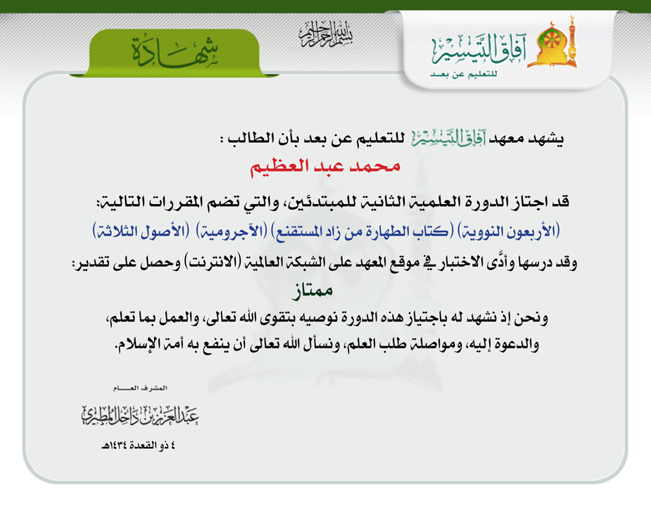 بسم الله الرحمن الرحيم شهادات خريجي الدورة الثانية |